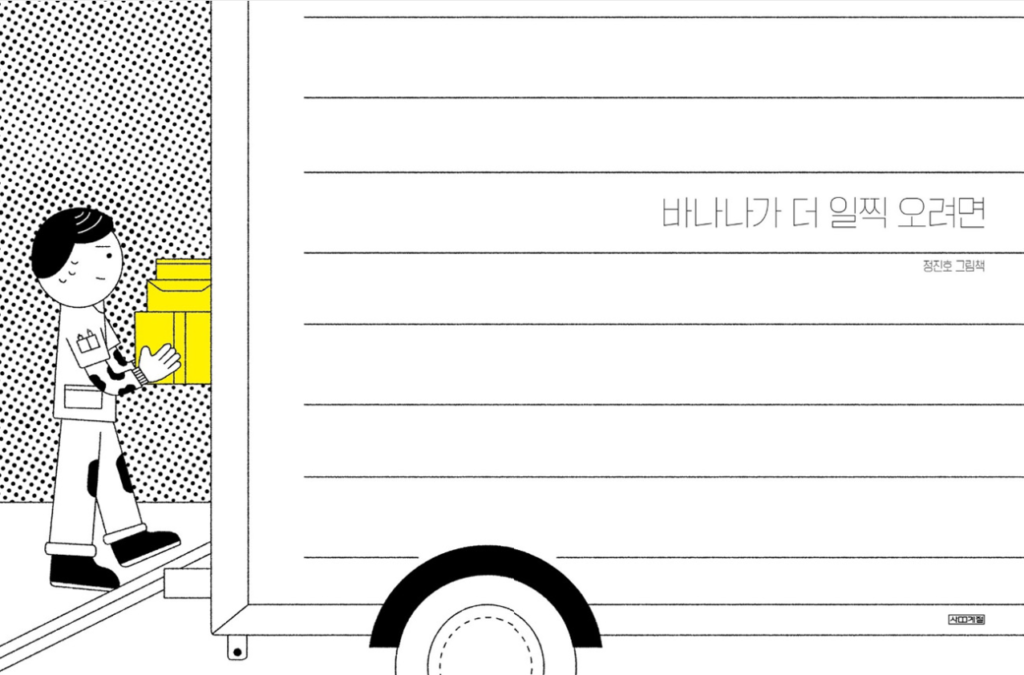 검정과 노랑의 절제된 색감은 노동의 무게와 연결의 감각을 더욱 선명하게 드러냅니다.
